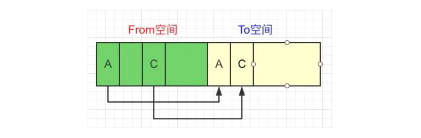 - 通过上面的示例,我们可以很清楚的看到,进行From和To交换,就是为了让活跃对象始终保持在一块semispace中,另一块semispace始终保持空闲的状态。